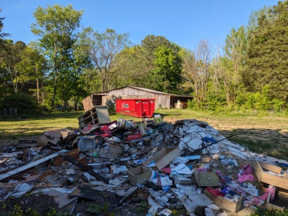 We had to hire people to clean trash out of home, barn, and the 2 large piles of construction waste they dumped in our yard instead of going to dump , this was waste from construction jobs they were doing , we had to get 2 - 30 yard dumpsters and a skid steer and operator to fill dumpster and it was weighed in at dump at 11.5 tons ( 23000 lbs ) of trash , not the dumpster or truck , one would think this meets the criteria of illegal dumping or aggravated littering